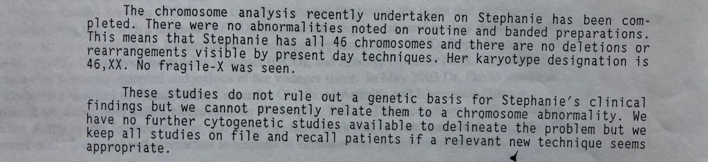 When I was 1 years old, it was advocated by my foster parents to have a full panel of genetic and chromosomal testing done because I was a fussy and “hard” baby and because both my birth parents had mental health issues and some limitations. These tests were normal but the stage was set. All the paperwork points to my first parents and my behavior was always related to my adoption. I was over diagnosed and over medicated my entire childhood. I was subjected to evaluation after evaluation, partial programs, sent away to other family members and even placed in a Residential Treatment Facility (which I showed absolutely no sign of the issues presented when placed there and also in which staff members and my counselor apologized to me for not being able to discharge me. In order to be discharged, my family had to attend family sessions but they refused for months. My “issues” only presented in the home so their hands were tied). I found an application in which my adoptive parents actually applied for me to receive SSI, which was denied.